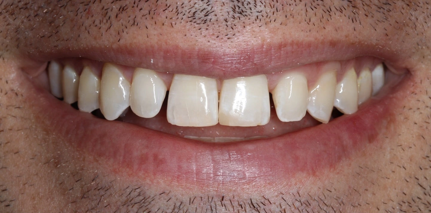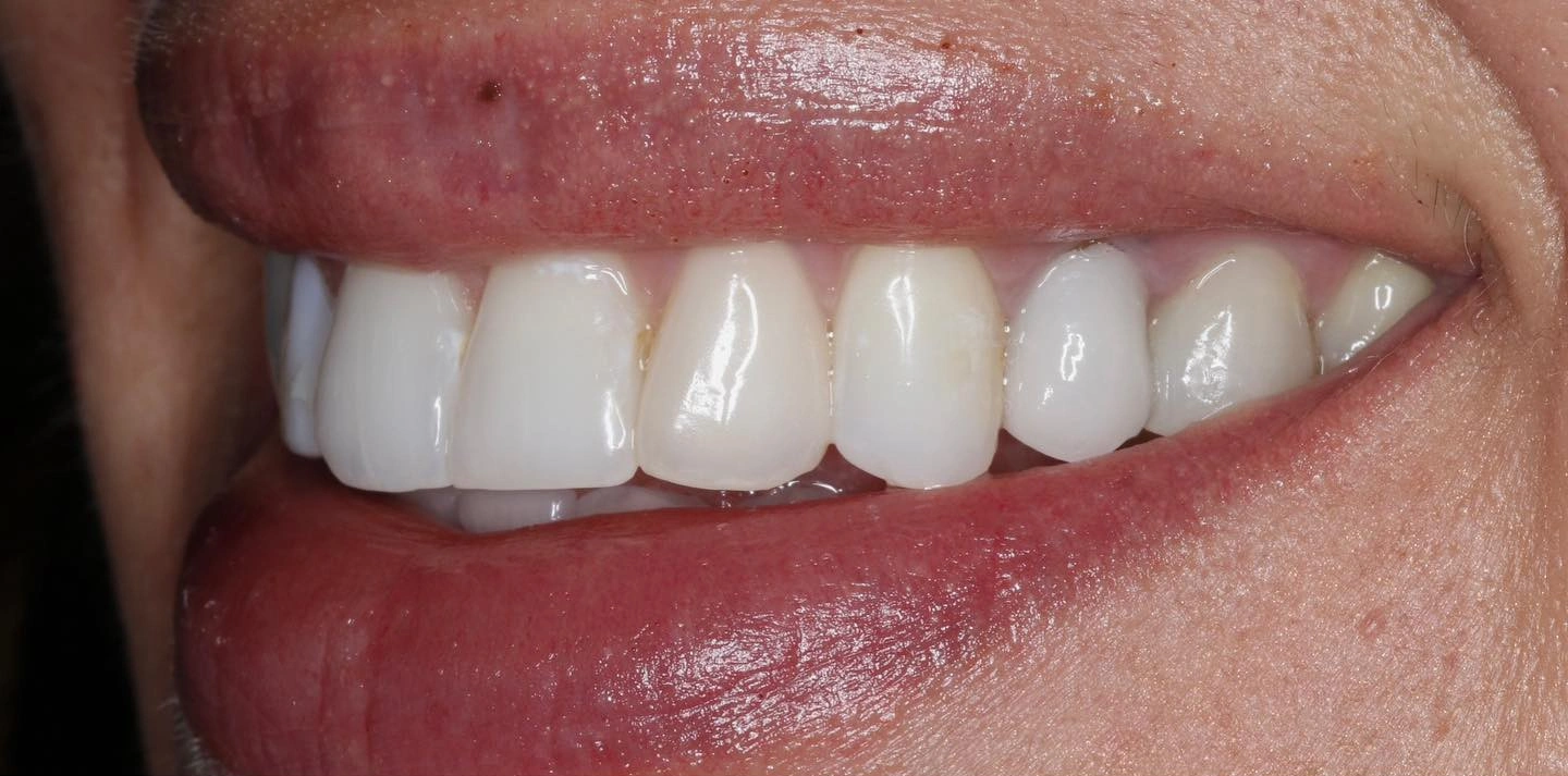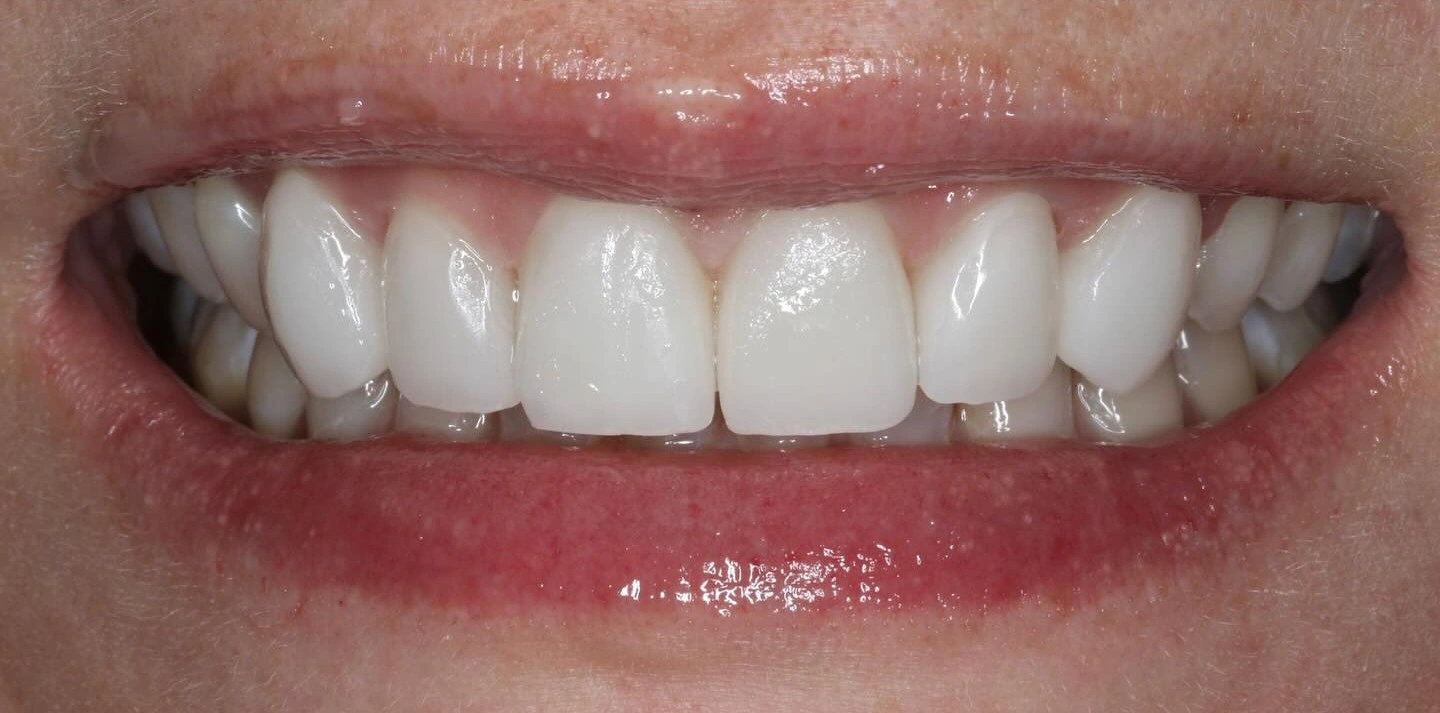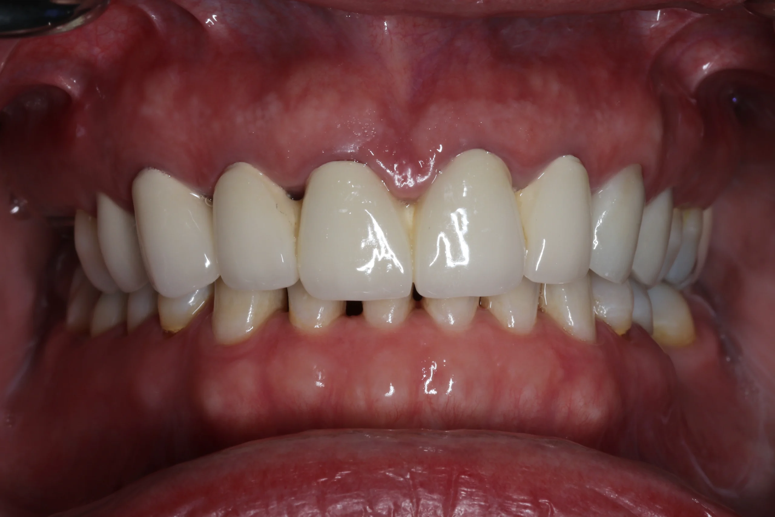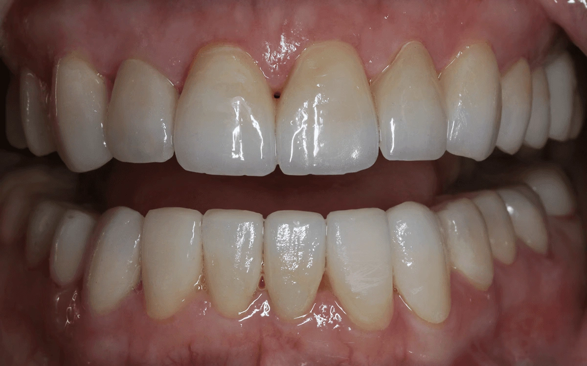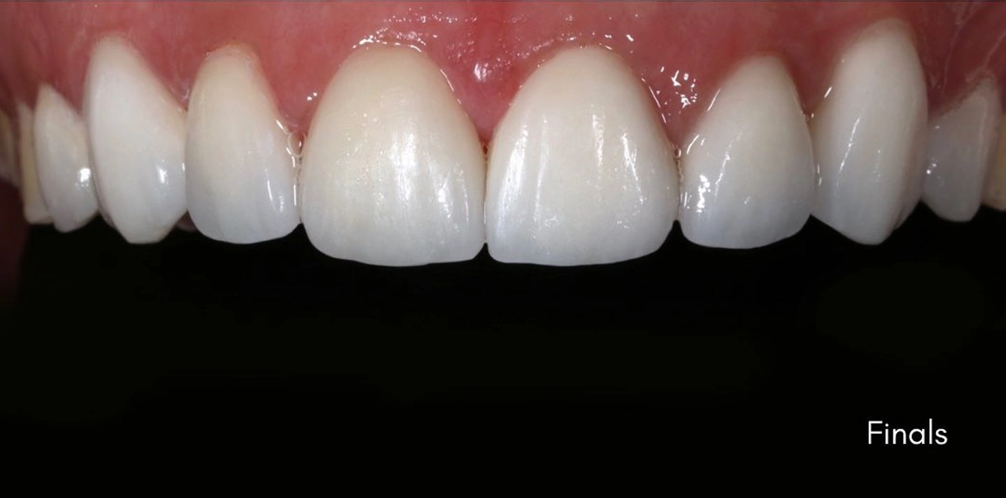 • Handcrafted 6 porcelain veneers to close remaining spaces