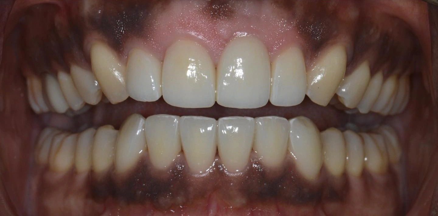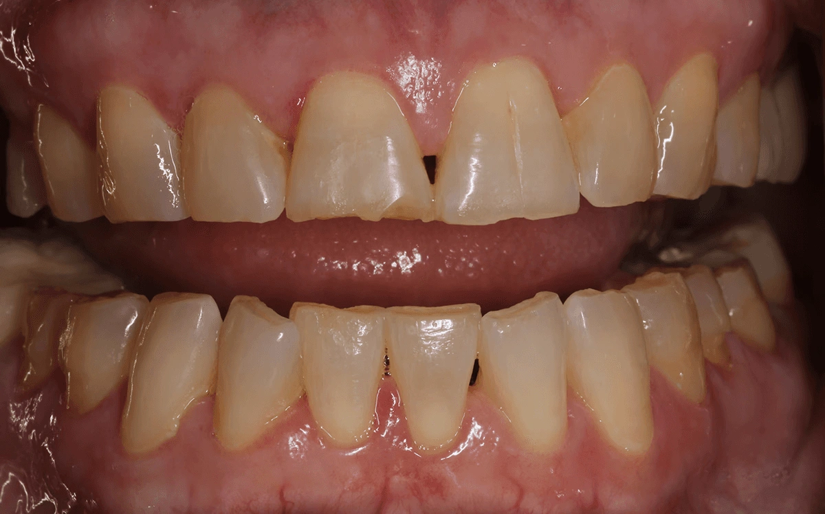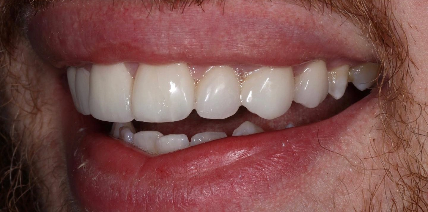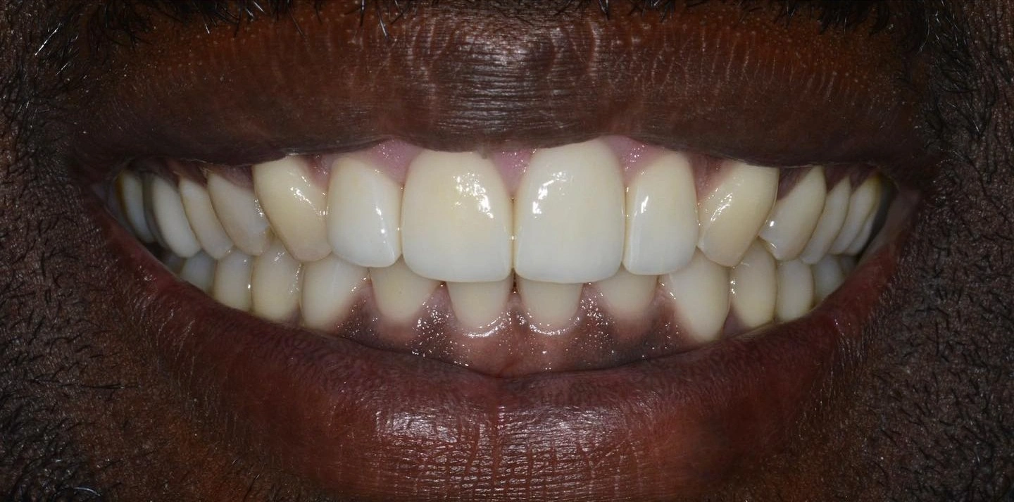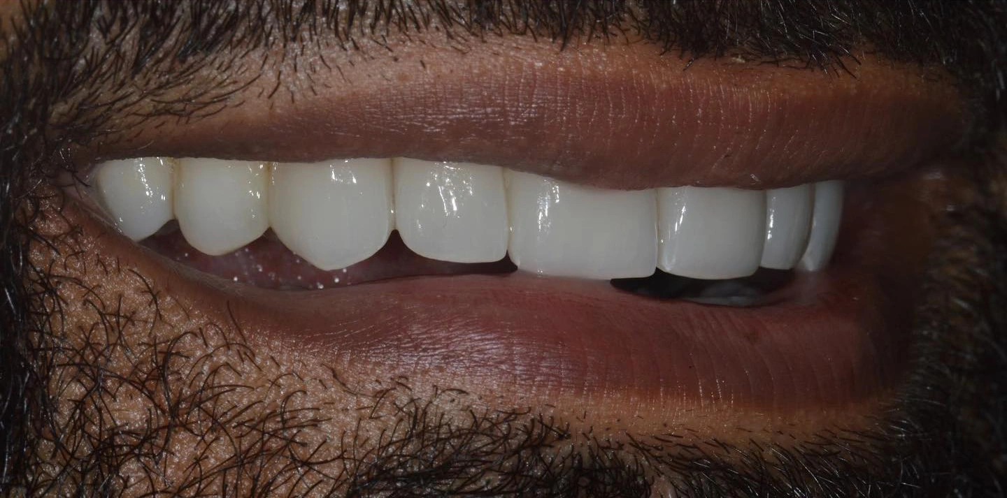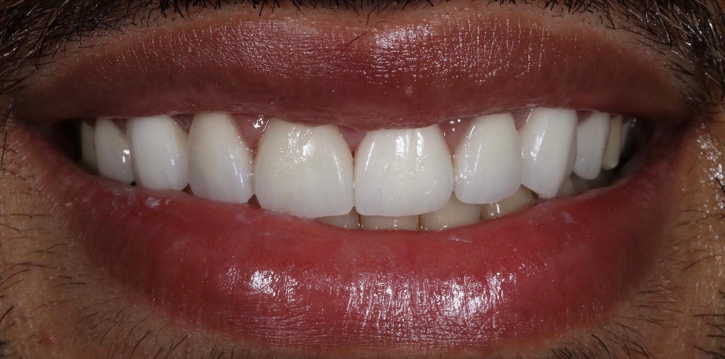 • Handcrafted 6 porcelain veneers to close remaining spaces