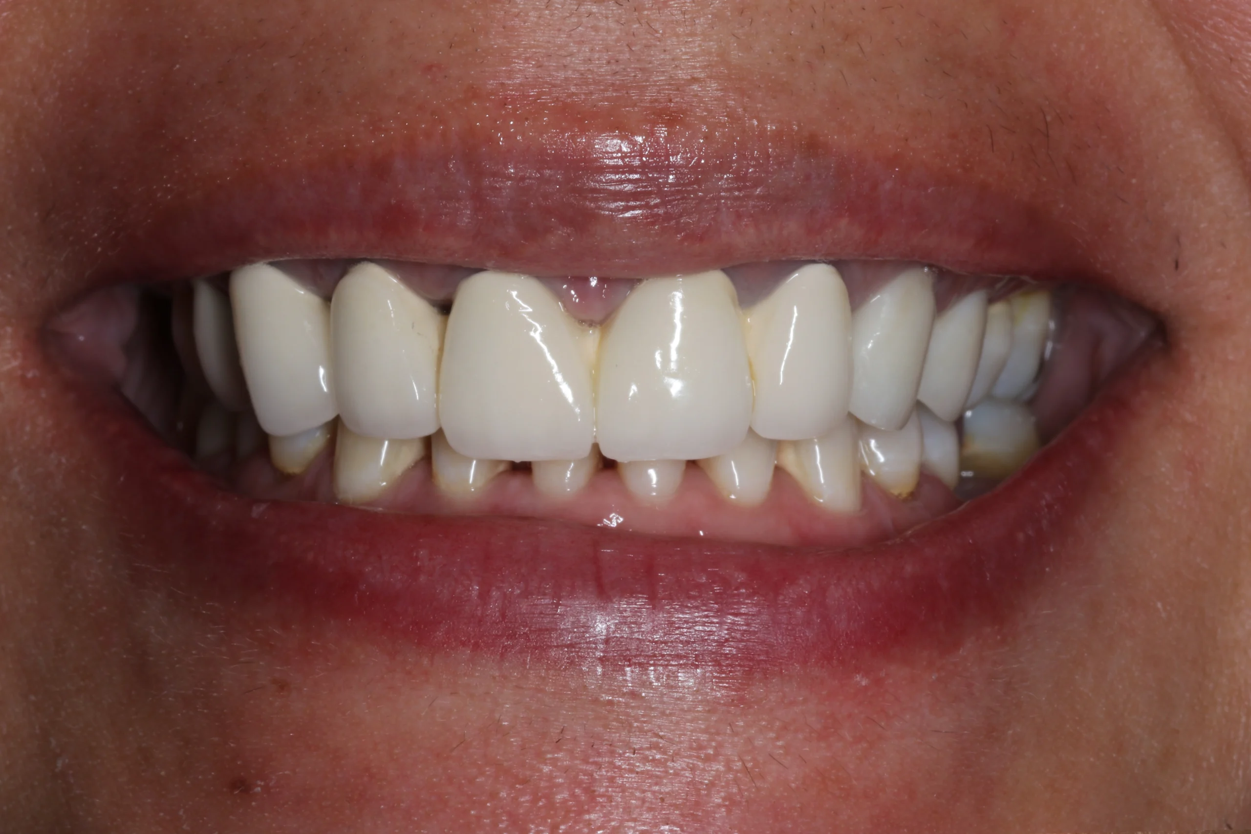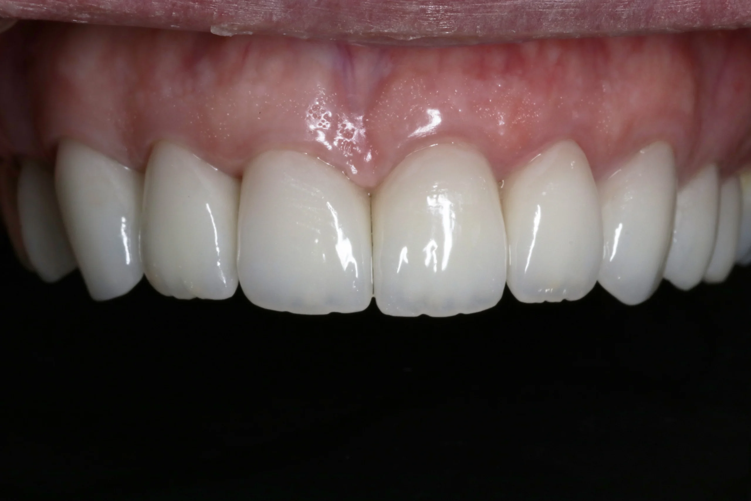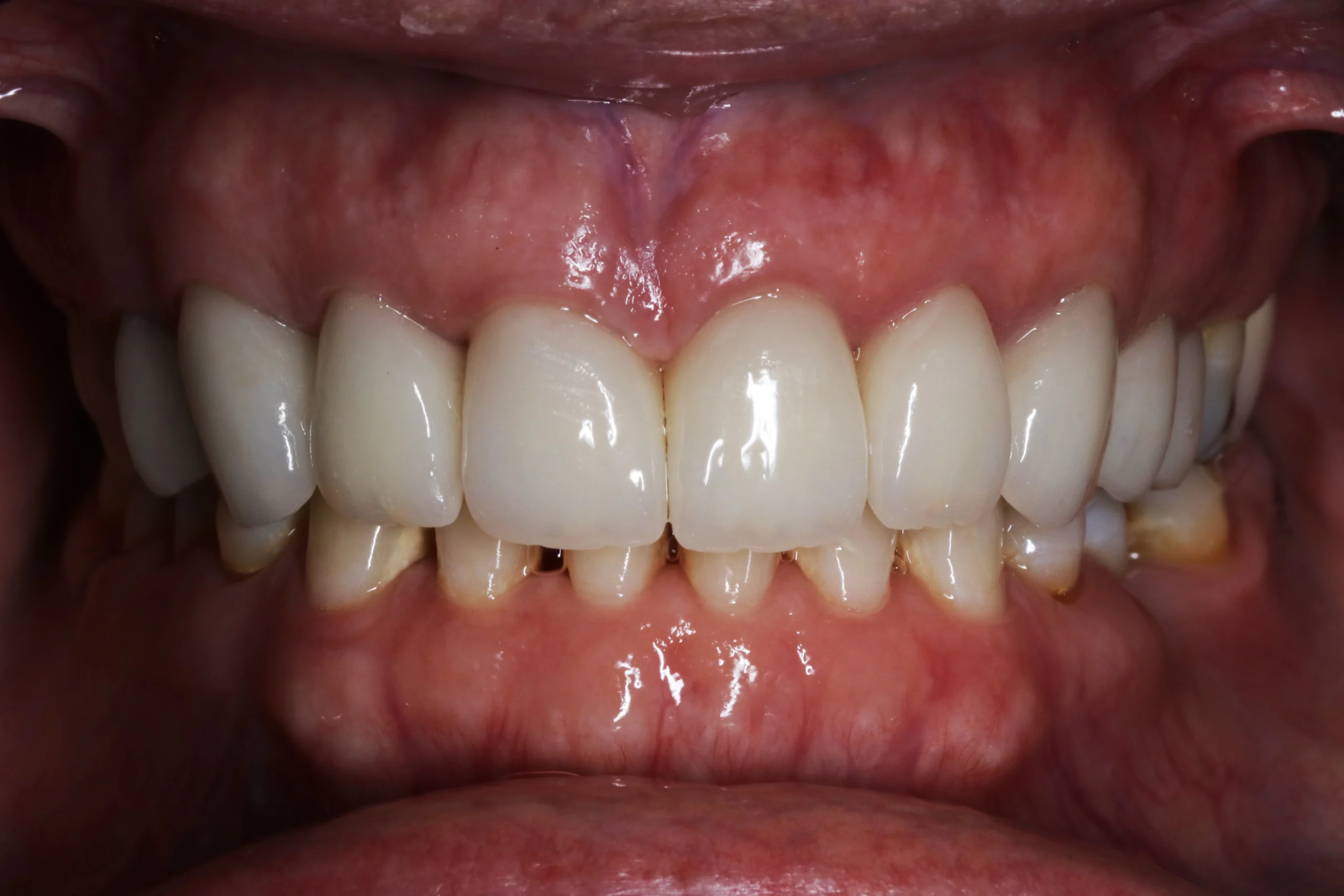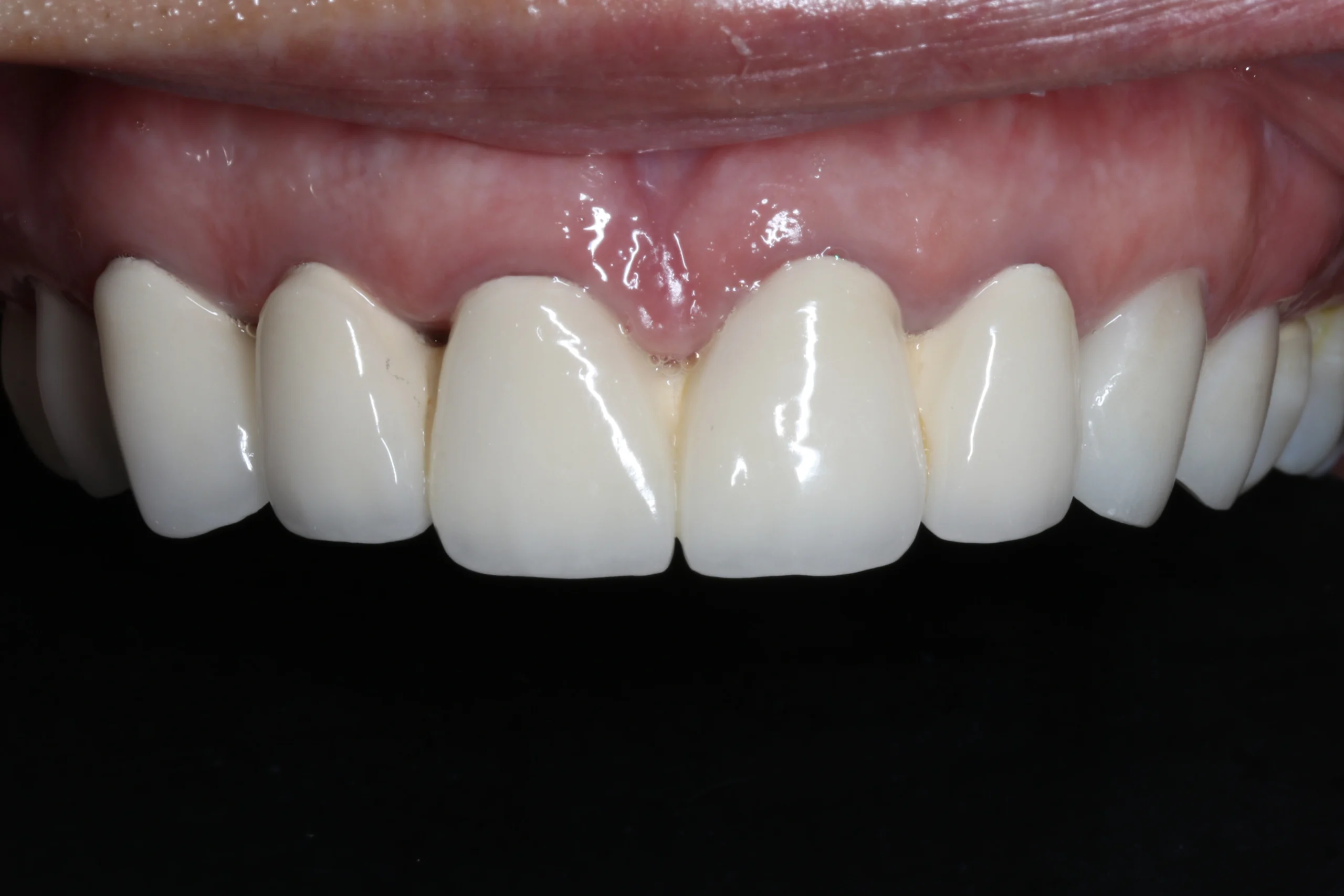 • Soft tissue management was key - we used custom pieces to help the gums heal in a natural shape, and worked closely with the lab to make sure the teeth fit well and matched the bone and spacing
