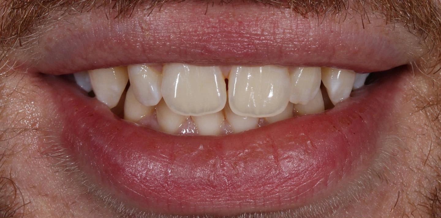 • Patient presented with peg laterals and a smile that he just was not happy with. Peg laterals are when the two teeth next to your front teeth didn’t fully develop, so they look smaller, thinner, or pointier than usual