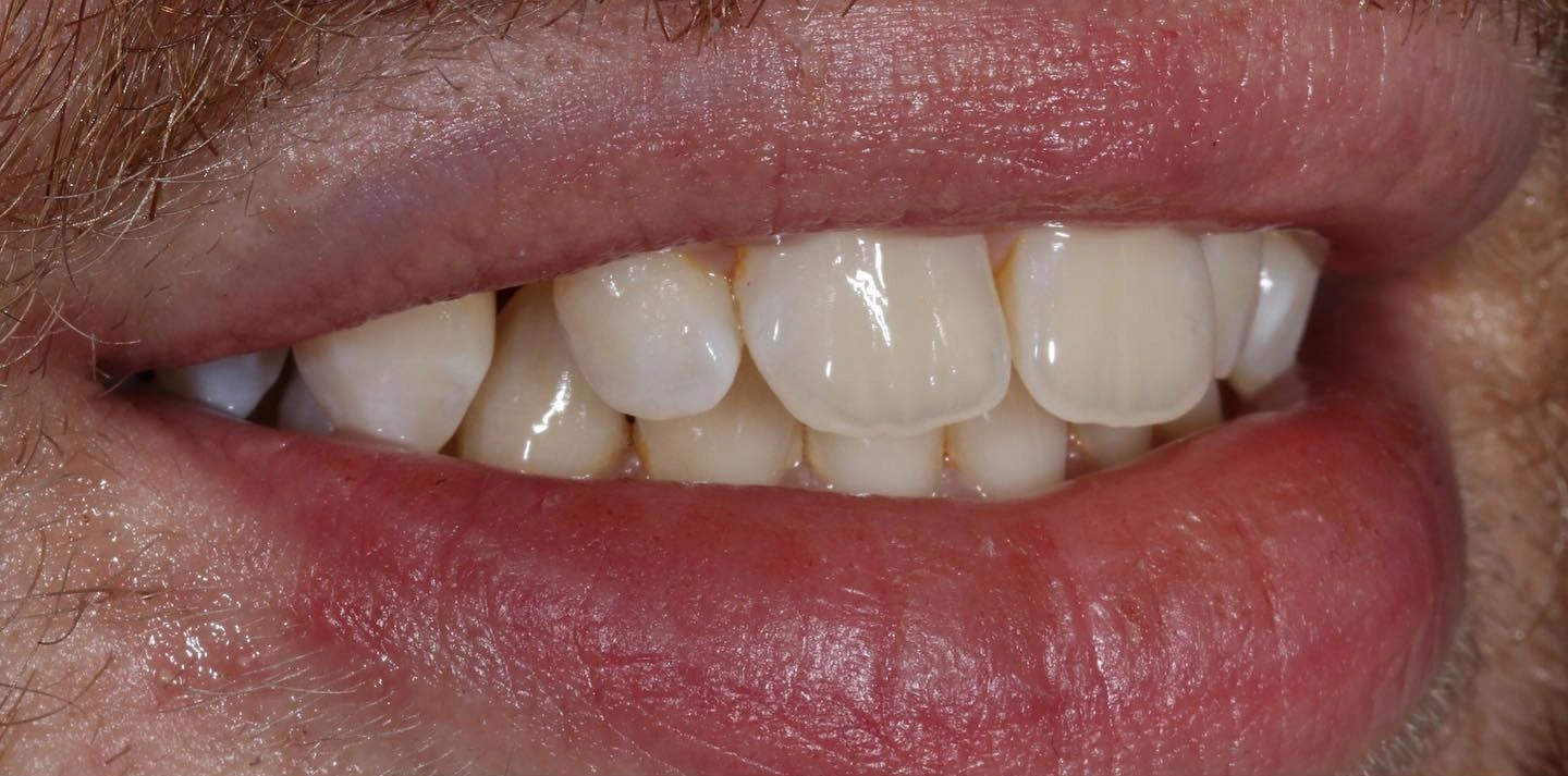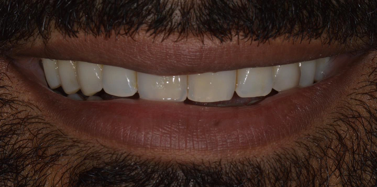 • Patient’s teeth were too narrow for his bite, so we had to consider the appropriate widths/lengths of the teeth for the ultimate success of this treatment. The golden proportion/ratio and Chu proportion were used to ultimately determine the gingival position