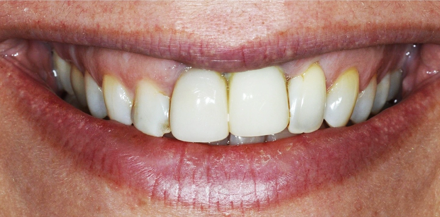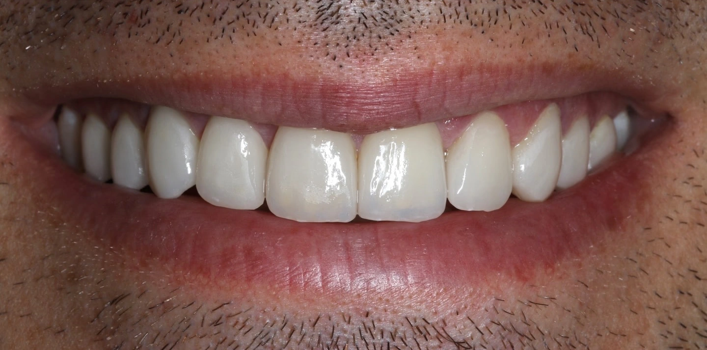 • Replaced existing discolored work and fixed tooth proportions using 10 unit veneers/crowns