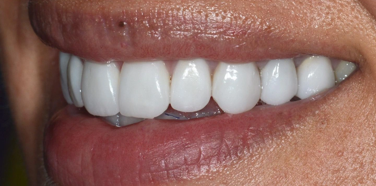 • We began by creating a trial smile so she could preview the final outcome before any treatment started. Once she felt confident in the direction, we carefully removed the old crowns and performed a deep cleaning underneath to reset the foundation.