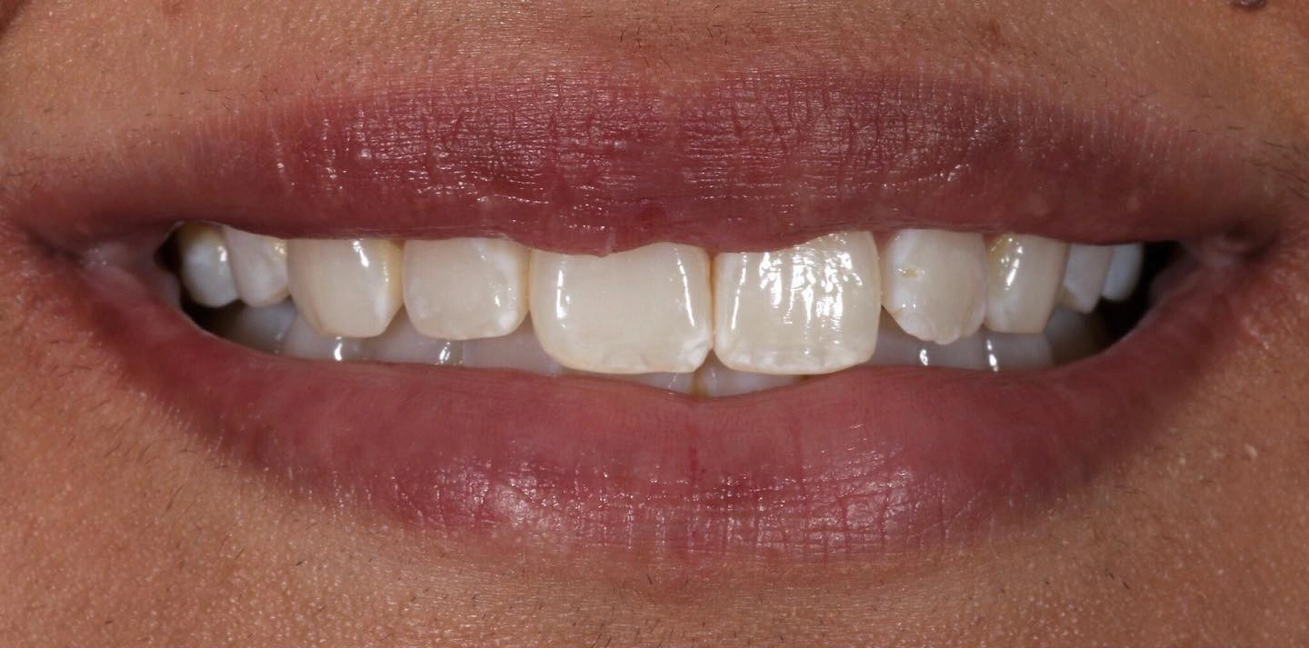 • After consultation, we took a conservative approach with a combination of ICON on all 6 anterior teeth and composite resin on just the laterals (beside the front teeth)